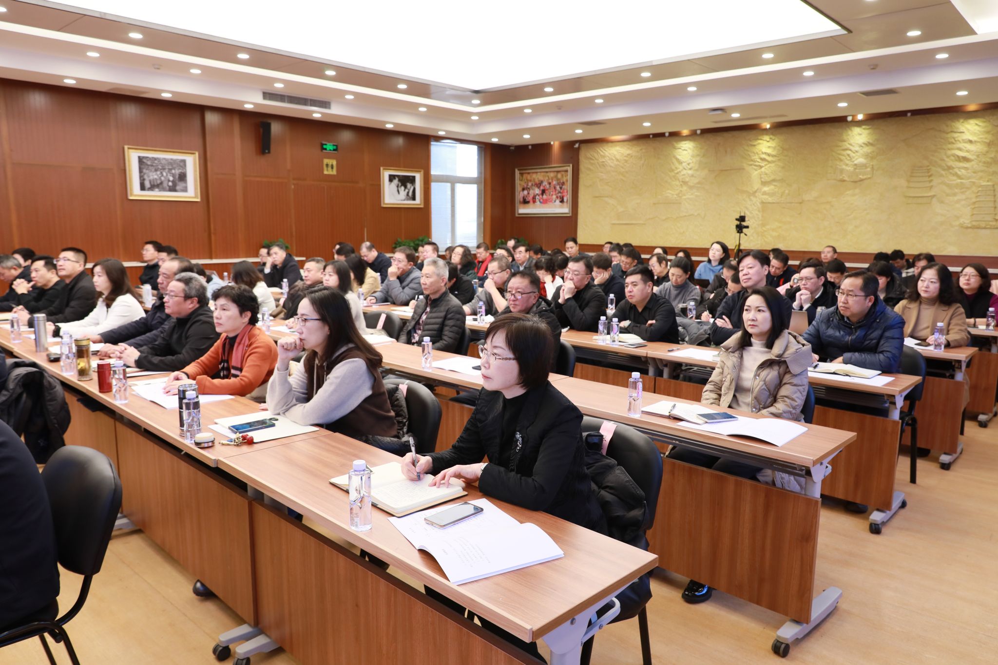 全体在校校领导,校长助理,各部门、各单位主要负责人在主会场知行堂参会,职能部门和校属单位副处级、科级(主任)干部、各民主党派主委及负责人在文华楼报告厅分会场,本单位副处级干部、组织员、科长(主任)、教师党支部书记、系(教研室)主任、教授委员会成员在各学院会议室分会场,其他教职工在线上终端参会。